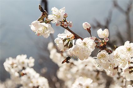 說(shuō)起三月瀘定的美,可不止油菜花。在冷磧鎮(zhèn),純白如雪的櫻花也競(jìng)相開(kāi)放。它們花團(tuán)錦簇,映著藍(lán)天,頗為壯觀。櫻桃花林中,簇簇花兒綴滿(mǎn)枝頭,潔白若仙。微風(fēng)吹過(guò),滿(mǎn)樹(shù)搖曳,像極了千萬(wàn)個(gè)精靈在春色中舞蹈。