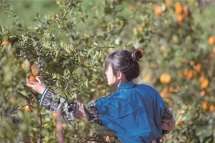 不遠(yuǎn)處,農(nóng)家大哥左握微型秤,旁邊框框紅艷艷草莓待稱(chēng),右拿手機(jī)收付款。穿過(guò)溪流木橋,黃四娘家青果累累,爍爍梨花下,女兒正梳妝挽云鬢;沈家河壩菜花黃黃,別院人聲鼎沸。遙想當(dāng)年,坡陡路險(xiǎn)。而今,鄉(xiāng)村振興,片片梯田,阡陌交通,戶(hù)戶(hù)通路。雨天一身泥,晴天一身灰已不復(fù)返。