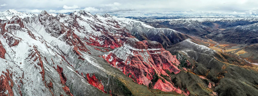 在美景如云、隨處驚艷的橫斷山,也有兩處稱得上“絕對(duì)反差”的地理奇觀。一個(gè)是道孚縣的“墨石公園”,另一處是新龍縣近年才被發(fā)現(xiàn)的新龍紅山“阿色丹霞”。