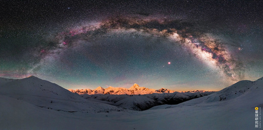 大雪山北部,海拔5884米的雅拉雪山與貢嘎遙相呼應,日落時分聳立在原野之上的雅拉被霞光籠罩如同大地的王冠;沙魯里山縱貫甘孜西部,它南北長約450公里,寬約200公里是四川最寬最長的山脈,它山勢平緩,置身其中有時都感覺不到山的存在,但同時,它高大巍峨,盛產超過6000米的獨立山峰,沙魯里山脈北段有海拔6168米的雀兒山,它的中段有海拔6174米的格聶山,它的南段有三座6000米級山峰組成的稻城三座雪山,彼此距離不過5-7千米,三山合圍之中給人強烈的視覺震撼和心靈沖擊。動輒直抵云霄的海拔,加上相對原始的環(huán)境,使得這里空氣潔凈度極高、光污染小,夜幕落下、銀河升起,云端之色變成一片攝人心魄的星光。
