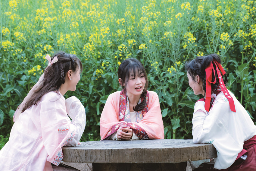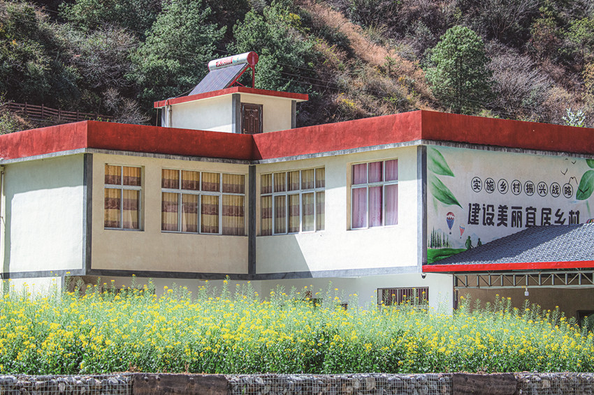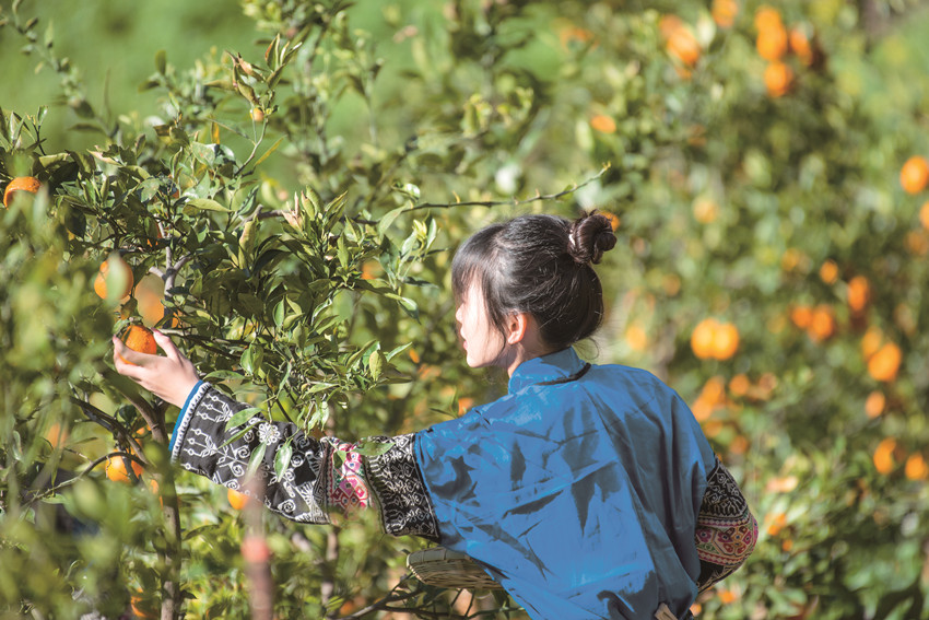 陽春三月,驅(qū)車百里,峰回路轉(zhuǎn),至一小鎮(zhèn),喚烏拉溪,為古驛站。背夫崖下,峻山環(huán)護,小河繞村,屋舍散落,白墻灰瓦,綴以紅檐,桃花夭夭,棧道蜿蜒??图倚∨?,青衣嬌容,穿行花間,簪花比俏。昔日荒坡,綠樹成蔭,繁花之下,草莓豆莢,青果胡豆,蔓草芳苓。
