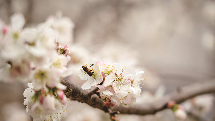 在冷磧鎮(zhèn)杵坭村,一場(chǎng)新雨過(guò)后,空氣中混雜著泥土與櫻桃花的芬芳,花朵們正迎春綻放,一簇簇、一串串,密密匝匝地綴滿枝頭,散發(fā)出沁人心脾的花香,蜜蜂飛舞在櫻桃花樹間,為一個(gè)月之后的豐收而忙碌。沿著觀光大道,綿延數(shù)公里的櫻桃花吸引了不少游客前來(lái)游玩打卡。