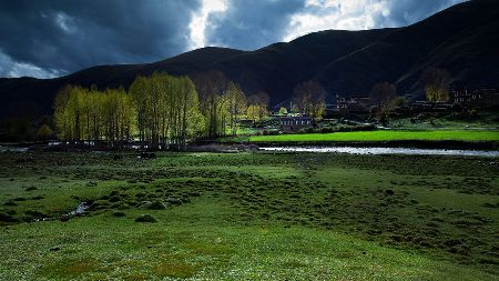湛藍的天空下,雄鷹在盤旋,牛羊在安詳?shù)芈匠圆荩o靜的小河在山邊蜿蜒流淌,充滿綠意的白楊樹在風(fēng)中搖曳,藏式民居不時升起縷縷炊煙,寂靜、空曠的原野深處偶爾會傳來幾聲狗叫高原的陽光又賦予這幅風(fēng)景畫凝重的色彩這樣的畫面叫人心醉,讓人留戀忘返從折多山腳下至新都橋鎮(zhèn),再至塔公草原,處處都是入畫的美景,不愧稱為“攝影家的天堂”。