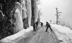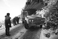 一九九七年十一月二十四日,連續(xù)多日大雪,把整個二郎山裹得嚴嚴實實,白茫茫一片。陣陣山風吹過,大霧就像瀑布一樣,從山頂直往下翻涌傾瀉。 一大早,州交通局打冰除雪排險的干部職工就從二郎山管理站直奔山埡口。載有防滑砂的大貨車穿迷霧,繞山梁,向山頂埡口疾馳。由于氣溫太低,霧又大,車上的擋風玻璃很快就結下了冰,路面打滑非常嚴重。前面車輛堵了起來,排險人員只好下車步行。 大霧彌漫,能見度很底,陰霾的天空又飄起了紛紛揚揚的雪花,剌骨的寒風陣陣襲來,只聽見車蓬布在風中“嗶剝”作響,卻看不見前面到底堵了多少車。排險人員只好相互攙扶踩著冰滑的邊路艱難地向行。好不容易來到堵在最前面的車子面前。原來是一輛載著原木的東風牌大貨車側滑在公路上,把整個公路堵死了。 局領導當即指揮大家用鋼釬、鐵鎬和鋤頭處理冰道,沒有撮箕,大家借來加水桶裝運冰雪……氣溫仍在急劇下降,剛從雪堆里刨出來的路,又被結起一層冰,就像地面上澆上了油,這就是冰雪道上有名的“桐油凌”。 有二位老同志不顧年老體弱,積極參與打冰除雪,一個在打冰時,被彈起的冰碴把腦門劃了一個口子,鮮血直往外冒。有人想幫他包扎,他堅決不干,自己就用手帕按住,把帽子向下拉蓋住傷口就算了。血從手帕中浸透出來,與眉毛上的冰凌結在一起。氣溫太低,冰層太厚,十字鎬每挖一下,多數(shù)情況下也就是挖下一個白點而已。不一會兒,另一位老同志已是滿頭大汗,大家勸他休息一下,他卻說:趁著現(xiàn)在雪不是太大,早點把主道上的冰雪多除點,過往二郎山的車輛就多一份安全。 排險人員的手凍紅了,刨冰雪碰傷的指頭還流著鮮血,身上蒸發(fā)的熱氣,把衣領口、袖子口和褲子口結成了冰,可是,誰也沒有吭一聲。 ……受堵車輛終于向前開動了。 風,越刮越猛,雪,越來越大。 防滑車在冰雪道上艱難地向前爬行著,車箱上面的職工們揮舞的洋鏟向路面撒著防滑砂。一路上風絞雪,防滑車象一頭不聽使喚的牛,顛簸、亂竄,好不容易才來到260(二郎山最險處),對這里“桐油凌”路面進行重點防滑處理后,防滑車又返回來,開始向山頂進發(fā)……風雪二郎山上打冰除雪、防滑排險,看似沒有驚天動地的壯舉,身臨其景才知其艱難辛苦。難怪當年每每經(jīng)過二郎山冰天雪地奇險路段的車,都會向風雪中屹立路邊的交通系統(tǒng)排險保暢通的職工們鳴笛致敬,風雪中的那份情彌足珍貴。 川藏線上的老司機傳下來一首傷心的順口溜:“車過二郎山,如闖鬼門關,萬幸不翻車,也要凍三天!”其險峻實為罕見,尤其是途經(jīng)二郎山260(公路公樁)處,曾被淡虎色變的人稱為“鬼招手”的險路段。 1983年1月3日,有著安全行車44萬公里記錄的一位駕駛員開著輛嶄新的東風牌貨車,同行還有兩名職工,夜行二郎山,在彌天大霧中神秘地“失蹤”了。十五天后,搜山的人才用望遠鏡看到260公里路樁處的山崖下,有一塊汽車破篷布掛在樹枝,猶如招魂的凄厲幌幡在冷風中招搖晃動。鋼纜繩吊著搜山的人下到崖下400米深處的谷底。扒開一座座雪堆,叫人汗毛倒豎:雪堆下,盡是廢大梁、爛車廂、銹車頭和支離破碎的汽車,足有一個汽車連!一輛不知埋了多久的卡車廂里牛肉已腐爛,駕駛室里坐著三具發(fā)黑的僵尸……其狀慘不忍睹!