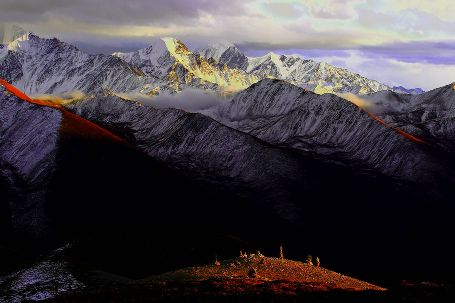 雅哈雪山雅哈埡口海拔4568米,距貢嘎山主峰直線距離約30km,是觀賞“蜀山之王”貢嘎山主峰及貢嘎群峰的極佳點(diǎn)。
