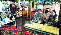 2000年春節(jié)后,越來(lái)越多的游客開(kāi)始來(lái)到這里觀光旅游,紛紛住進(jìn)了他的“藏家”。這一年開(kāi)始,他的收入破萬(wàn)了。鄧珠說(shuō),他家在4年內(nèi)就告別了“貧困戶”的稱號(hào),現(xiàn)在他的家庭收入有90%來(lái)自旅游接待。在他的帶動(dòng)下,村民們也開(kāi)始將自家的房子裝修成了旅游接待房,越來(lái)越多的游客住進(jìn)了牧民們開(kāi)辦的藏家樂(lè)中。