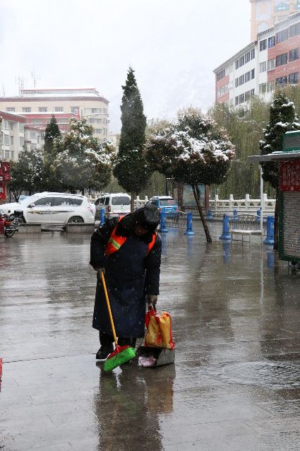 交警在忙碌,然而,我們的環(huán)衛(wèi)工也沒有歇著,無論是將軍橋、康定賓館、彩虹橋、下橋還是東關(guān)、北門,都有環(huán)衛(wèi)工人們的身影,他們不停的為這座美麗的城市清潔,讓人們感受到舒適空氣和美景。