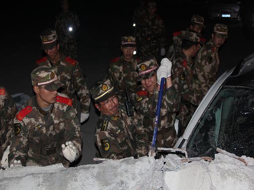 地震發(fā)生當(dāng)天,武警甘孜州森林支隊滿服役期的士兵已經(jīng)摘下警銜,等待宣布退伍命令。突如其來的災(zāi)難讓157名滿服役期戰(zhàn)士按捺不住焦急的心情,他們紛紛請纓,再穿軍裝上一線。楊晨、翁小鵬是眾多滿服役期戰(zhàn)士中的一員。