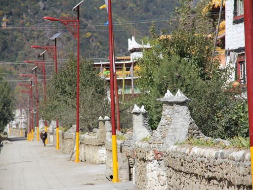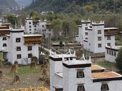 走進冬日的丹巴縣革什扎鄉(xiāng)三道橋村,一幅如詩如畫的鄉(xiāng)村美景映入眼簾:一排排新穎別致而獨具嘉絨特色的白色藏房鑲嵌在彎彎的革什扎河旁,格外耀眼。一條條平直寬敞的硬化路像一根根潔白的哈達連接家家戶戶,寬敞平坦的公路上,轎車、農(nóng)用車、拖拉機穿梭來往,別具一格的村民活動中心紅旗迎風飄揚。 這是如今的三道橋民族團結(jié)新村。