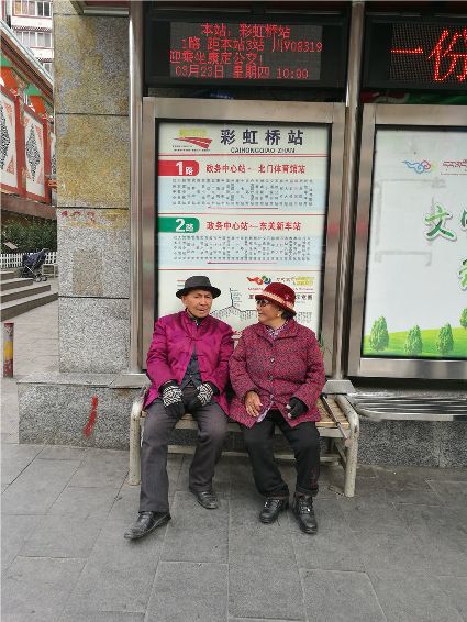 年輕時,無數(shù)的坎坎坷坷沒能讓我們前進的步伐停下;年老時,即便步履蹣跚,相互攙扶依然可以走到花開的彼岸。公交站點旁,陽光灑下,溫暖了年老的身,更溫暖了有愛的心,勝過藍墨的天空下,那熟悉溫暖的臉旁經(jīng)陽光的修飾后,是那樣撥動心弦。