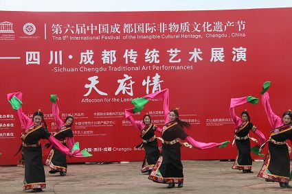 到處都是炫麗的色彩,到處都有神秘的傳承,6月10日,第六屆成都國際非遺節(jié)在成都拉開帷幕。當(dāng)天下午2時,一場我州特有的文化大戲在成都非遺博覽園西城事廣場上演。我州石渠真達(dá)鍋莊隊在此激情演繹,他們揮舞長袖,翩翩起舞,讓前來游覽的觀眾贊不絕口。