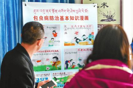 “對(duì)包蟲病,預(yù)防的重點(diǎn)是養(yǎng)成健康的生活習(xí)慣?!笔h疾控中心主任謝飛說。當(dāng)?shù)赝菩邪x病防治教育工作,全縣的學(xué)生們每天唱《包蟲病防治之歌》,跳“洗手舞”,學(xué)習(xí)“七步洗手法”,每周還增設(shè)包蟲病防治課程。通過多種方式,全力普及包蟲病防治知識(shí)和救治政策,不斷提高健康教育廣度和深度,包蟲病防治知識(shí)總體知曉率由過去的30%提高到87.94%。