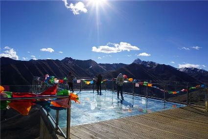 景區(qū)共有2個觀景平臺,“群峰為屏觀景平臺”和“俄米曲觀景平臺”,兩個觀景平臺都是觀賞貢嘎群山的絕佳觀賞點,視野廣闊,在這里可以欣賞到藍天白云,光影交錯,巍峨的貢嘎群山伴隨著連綿白雪顯得格外壯觀震撼。