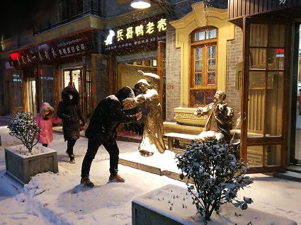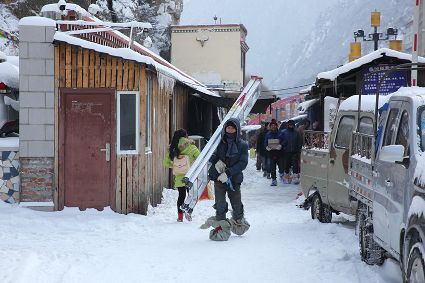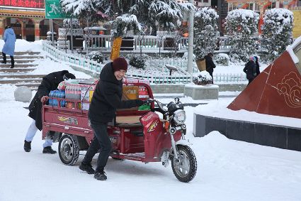 “風(fēng)雨送春歸,飛雪迎春到。已是懸崖百丈冰,猶有花枝俏?!?月4日傍晚,大片大片的雪花,從昏暗的天空中紛紛揚揚飄落下來。霎時間,山川、河流、城市,全都籠罩在白蒙蒙的大雪之中。黃昏的雪,下得深切切的,好象有千絲萬縷的情緒似的,又像海水一般洶涌,能夠淹沒一切,還有一絲揭開藏頭露尾般的裸露感。雪花形態(tài)萬千、晶瑩透亮,好象出征的戰(zhàn)士,披著銀色的盔甲,又像是一片片白色的戰(zhàn)帆在遠航…… 落光了葉子的柳樹上,掛滿了毛茸茸、亮晶晶的銀條兒;冬夏常青的松樹和柏樹,堆滿了蓬松松、沉甸甸的雪球。那一片雪花在空中舞動著各種姿勢,或飛翔,或盤旋,或直直地快速墜落,鋪落在地上?!昂鋈缫灰勾猴L(fēng)來,千樹萬樹梨花開”——這是雪的燦爛;一場瑞雪,扮美了康定,年味籠罩的康定城,嫵媚妖嬈。無論是背水姑娘、有著年味兒的將軍橋,還是大紅燈籠高高掛的康定門,都在雪后別有一番景致。與美景合影、和朋友玩雪都是最佳選擇。在風(fēng)雪中,交警不畏嚴寒默默堅守崗位 ,指揮交通疏堵保暢。他們的身影在皚皚風(fēng)雪路上站成一道道最美的風(fēng)景,溫暖了康定。從早上六點開始,康定的環(huán)衛(wèi)工就迎著刺骨的寒風(fēng),開始了除冰雪保通暢的行動,在積雪覆蓋的康定城,早起的商販樂呵呵地做起了買賣;民工迎著雪后的寒風(fēng)出門務(wù)工,他們是最可敬的人。