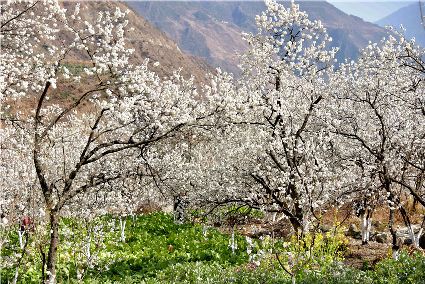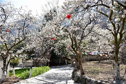 陽春三月,瀘定陽光明媚,到處生機盎然。大渡河畔的杵坭、田壩等地櫻桃花在田間競相綻放,一團團,一簇簇,一朵朵潔白的花兒緊緊簇擁著,綴滿枝頭。一陣陣微風(fēng)吹來,櫻桃花隨著枝條在風(fēng)中輕盈地搖曳。