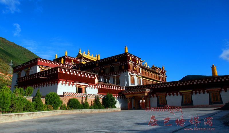 老寺廟經(jīng)歷了無數(shù)滄桑變故,已是滿目瘡痍,1996年,在國家的支持下遷址重建。新寺坐落在雄偉的巴姆山腰,從這里可以俯瞰縣城全景。主殿為四層錯落式建筑,占地超過2000平方米,規(guī)模宏大,裝修精美,尤以“建筑藝術(shù),雕塑藝術(shù),彩繪藝術(shù)“三絕著稱”。