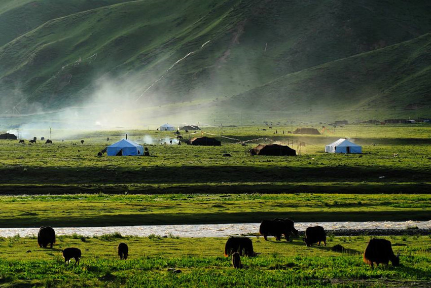 觀音鎮(zhèn)下住了一晚,第二天很早就出發(fā)去色達(dá)。