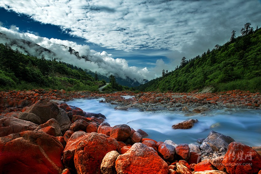 紅石是大自然贈(zèng)賜予貢嘎山地區(qū)最珍稀的物種之一。在海螺溝、燕子溝、南門(mén)關(guān)溝、雅家埂等景區(qū)里分布著大面積的紅石灘,每一塊石頭都被紅色旱蘚披上了一件美麗的紅色外衣,紅石在河流兩旁堆積,成群的紅石變成一種流動(dòng)的紅色,與清冽的流水相伴順流而下,讓人感嘆大自然的神奇造化,是世界上最大的紅石公園。