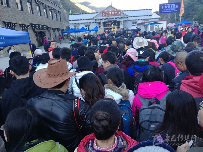 亞丁景區(qū)門(mén)票站游人如織。本網(wǎng)資料庫(kù) 圖