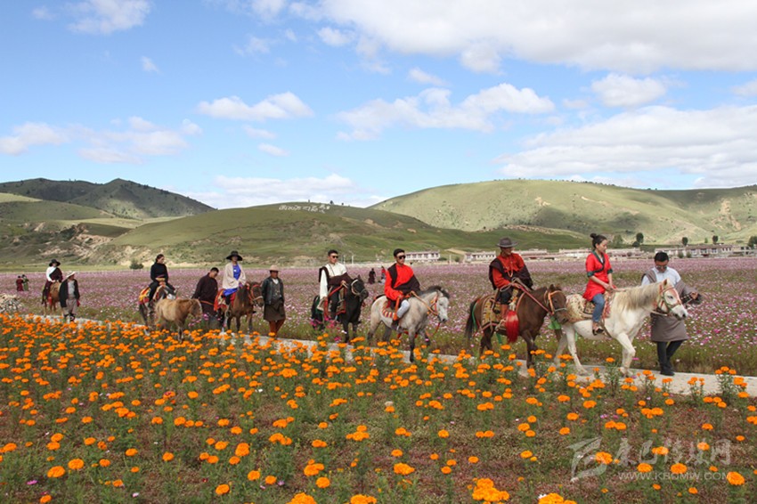 過去的漢戈村曾經是貧困村,2016年,當?shù)乩脟彝度氲闹攸c生態(tài)功能區(qū)轉移致富資金1100萬元,打造了花海景觀,解決村民就業(yè)1200余人次,鼓勵村民依托國道227線穿村而過的交通優(yōu)勢,借助花海發(fā)展帳篷民宿,騎馬、射箭等具有藏族特色的旅游產業(yè),每年吸引游客5萬余人,漢戈村人均增收2800多元。