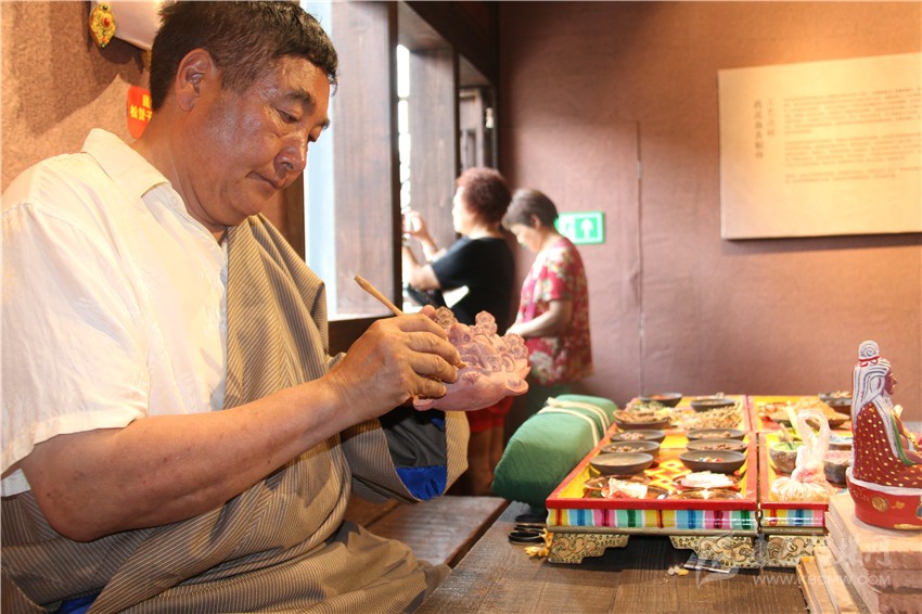 漫步成都非遺博覽園,但見在一片熱鬧和繁華之中,參演的非遺傳承人面露喜悅,或?qū)W⒘脸鏊麄兊募妓嚱^活,或耐心回答游客的提問,能夠到現(xiàn)場(chǎng)展示絕活,對(duì)他們來講,是一種榮譽(yù)。