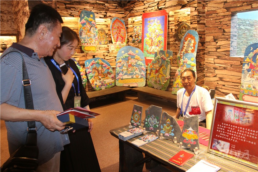 記者在現(xiàn)場(chǎng)看到,多位非遺傳承人借助聲光電、AR等新技術(shù)進(jìn)行演示,立體直觀地展現(xiàn)了走廊區(qū)域文化產(chǎn)業(yè)項(xiàng)目在推動(dòng)特色文化資源與科技融合方面的新趨勢(shì)。其中,我州展出的菩提珠、勉唐派唐卡、郎卡杰唐卡等民族特色工藝產(chǎn)品,都給觀眾留下了深刻印象。