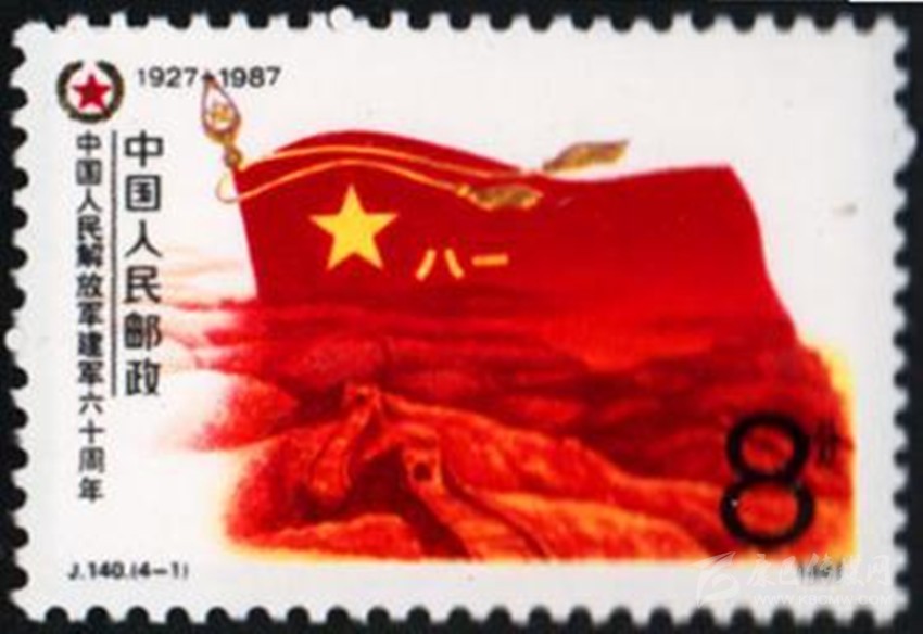 1977年8月1日原郵電部發(fā)行的《中國人民解放軍建軍50周年》紀(jì)念郵票,其中第4枚“雄師過大江”,圖案中一名沖在渡江隊(duì)伍前面的戰(zhàn)士高舉一面“八一”軍旗。1987年8月1日原郵電部發(fā)行的《中國人民解放軍建軍60周年》紀(jì)念郵票一套4枚。其中第1枚“軍魂”,郵票上一面鮮紅的“八一”軍旗迎風(fēng)飄揚(yáng),旗下是蜿蜒的萬里長城,代表了中國人民解放軍是保衛(wèi)祖國和人民的“鋼鐵長城”。1995年8月1日,原郵電部試發(fā)行一套“義務(wù)兵專用”郵票一套1枚,票名為“神圣的使命”,圖案以紅光四射的“八一”軍旗為背景,以現(xiàn)代化的飛機(jī)、坦克、火箭和象征和平的白鴿為襯托,畫面是威武的陸海空三軍,顯示我軍鋼鐵長城般攻無不克、戰(zhàn)無不勝的精神風(fēng)貌。