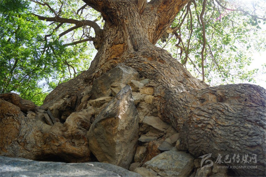 站在巴塘縣城夏邛鎮(zhèn)的廣場上,目光穿過鱗次櫛比的建筑上空,在東南方一角,遠(yuǎn)遠(yuǎn)就能看見一棵高大的桑樹沖破了城市的圍裹,直指蒼穹,在微風(fēng)中搖動著嫩綠的枝葉。一位在廣場上搖動轉(zhuǎn)金筒的老人告訴我,在那棵樹下,有一塊巨石,上面鐫刻有許多文字,因為石頭與樹共生共長在一起,人們?nèi)∽鳌肮派1敝烂?,它也因此成為了聞名巴塘的景點之一。聽后,我怦然心動,乘著涼爽的晨風(fēng)我向著“古桑抱石”景點走去。