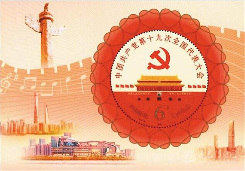 10月18日發(fā)行的《中國(guó)共產(chǎn)黨第十九次全國(guó)代表大會(huì)》紀(jì)念郵票小型張。
