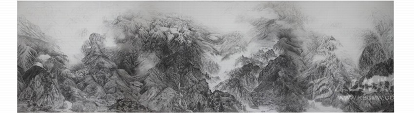 在我剛開始創(chuàng)作“茶馬古道”之時,有人問我:“給誰畫的?拿來賣的嗎?”我連連搖頭,問者滿臉疑惑。也有同行對我創(chuàng)作大幅素描山水畫有些不解。其實我沒那么奇葩,只是每個人想要的不同而已。我花費大量的財力和精力去采風(fēng)、寫生并潛心創(chuàng)作《茶馬古道》,是因為我長在“茶馬古道”,是“茶馬古道”養(yǎng)育了我,是我的“責(zé)任感”使然;為什么還要畫一幅難以參加常規(guī)展覽尺寸(966×266cm)的作品呢?是因為“茶馬古道”東線艱險而又壯美的河山及所包涵的故事,用較小尺幅難以表達盡興。再則在藏族唐卡布上用鉛筆勾勒和皴擦出中國山水畫的意境,是一種新的嘗試,也是中西文化的再一次交匯。