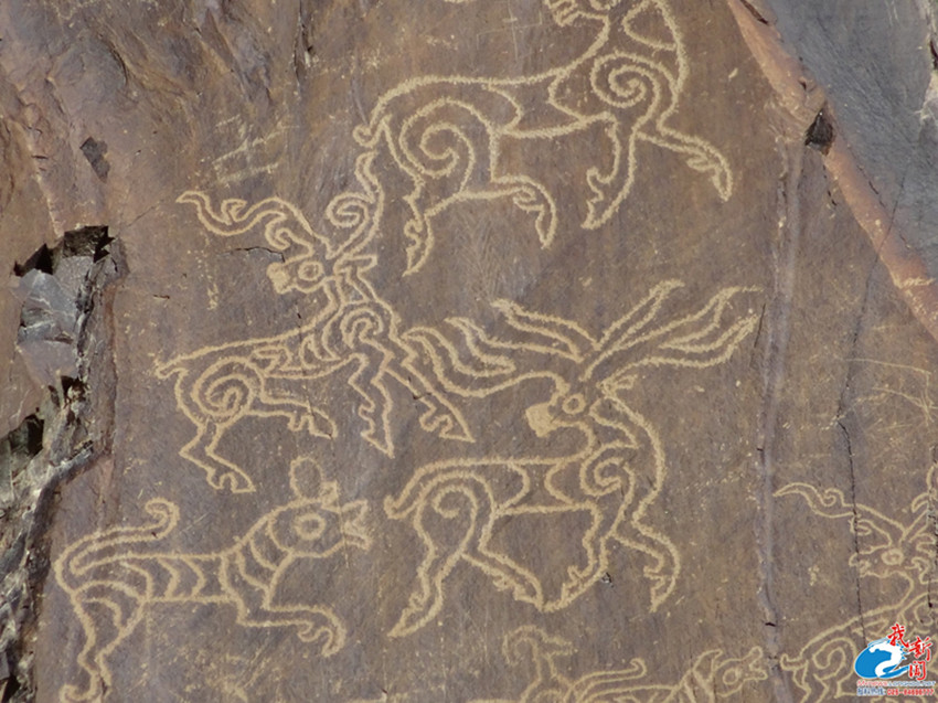 西藏阿里任姆棟巖畫(新石器時(shí)代)。