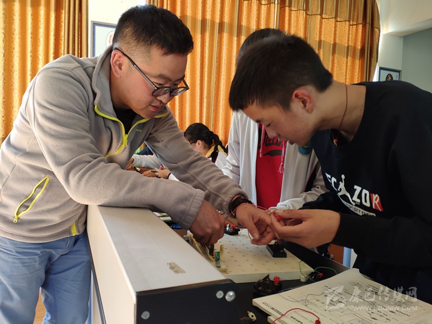 孫橙陽老師在爐霍縣中學物理實驗室指導網(wǎng)班學生做實驗。