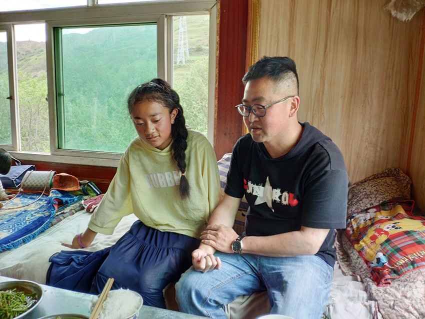 藏族同胞招待客人都會準備香甜的酥油茶和很多零食,孫橙陽來到客廳,阿婆說:“孫老師,請上座。”冬拉初為孫橙陽倒上了剛煮好的酥油茶,孫橙陽喝上一口,從嘴里甜到心里。小卓瑪也來了,孫橙陽自己也有一個一歲五個月的女兒在成都,抱著小卓瑪甚是喜歡。