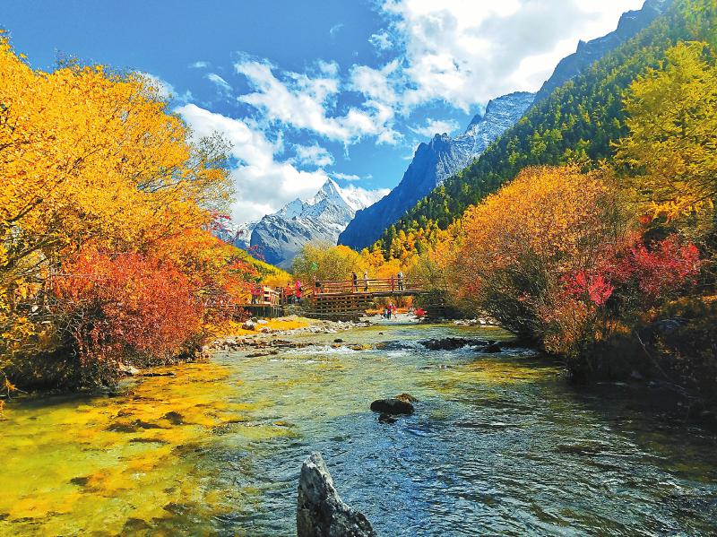 金沙江與G318線的交匯是在巴塘縣的竹巴龍,在這里一道長虹般的大橋橫跨金沙江,連接川藏,G318線跨越大橋就進(jìn)入西藏。至今還清楚地記得,第一次邂逅金沙江大橋的情景。那是跟隨一位我特別敬重的老領(lǐng)導(dǎo)到巴塘縣開展農(nóng)業(yè)工作,激越奔泄的滔滔江水,連接?xùn)|西的宏偉大橋,還有驕陽如火的村寨和熱情淳樸的父老鄉(xiāng)親……在我心里留下了深刻的印象,這就是G318線川藏的連接點。