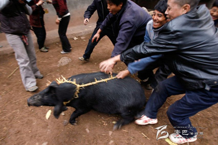 割豬蹄給娃娃們拿到山上玩。大人陪他們?nèi)计痼艋穑笓]他們將豬蹄不分你我地拋進火中燒熟后,你一塊,我一坨地掏來吃,以養(yǎng)成團結友愛的道德風尚。