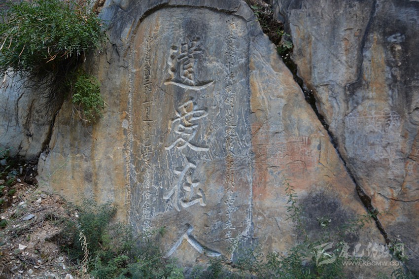 《纜轡澄清》:在《遺愛(ài)在人》左上方的石壁上,為民國(guó)年間四川邊軍代理分統(tǒng)高德翼題,攬轡:拉住馬韁。澄清:平治天下。表明了其澄清天下的抱負(fù)。由于雨水侵蝕,已不是很清晰了。