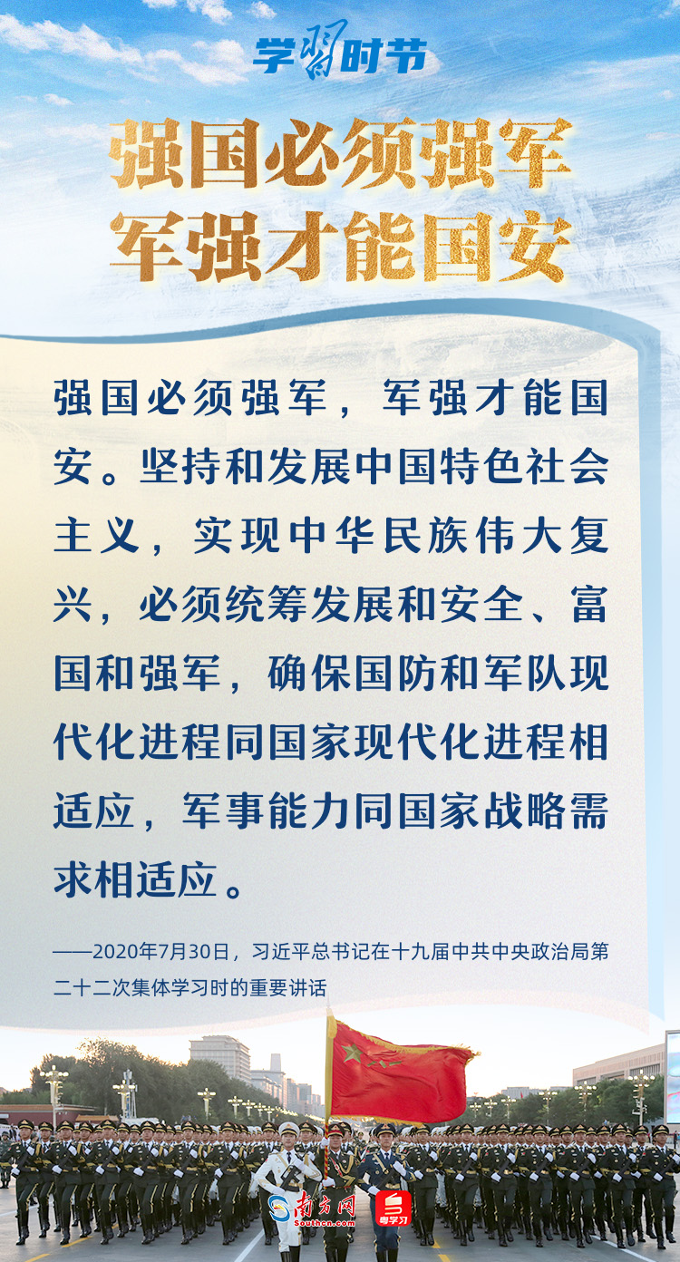 強國必須強軍,軍強才能國安。黨的十八大以來,以習近平同志為核心的黨中央領(lǐng)導軍隊和國防建設,開啟強軍興軍新征程,形成了習近平強軍思想,指引人民軍隊朝著實現(xiàn)新時代強軍目標、全面建成世界一流軍隊奮勇前行。在八一建軍節(jié)到來之際,讓我們一起回顧總書記那些振奮人心的強軍話語。