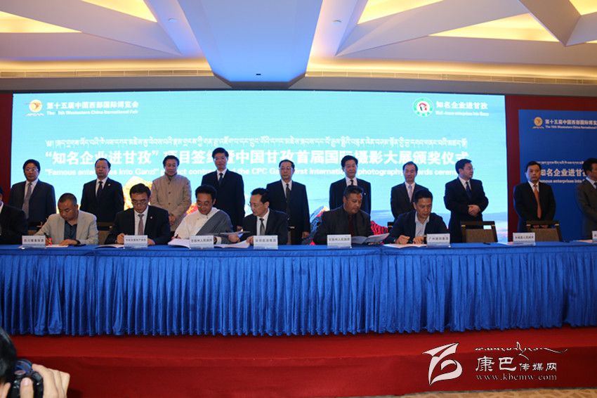 本網(wǎng)訊 (記者 秦松 陳雪峰 文/圖) 10月25日,“知名企業(yè)進(jìn)甘孜”項(xiàng)目簽約暨中國甘孜首屆國際攝影大展頒獎儀式在成都舉行。項(xiàng)目簽約儀式上,我州按照“一優(yōu)先、二有序、三加快”的產(chǎn)業(yè)發(fā)展思路,精心篩選包裝推出了具有一定代表性和廣闊市場前景的148個估算總投資560億元的招商項(xiàng)目,主要涉及旅游業(yè)、文化業(yè)、特色農(nóng)牧業(yè)、中藏醫(yī)藥業(yè)、工業(yè)、服務(wù)業(yè)等產(chǎn)業(yè)。邀請國內(nèi)外知名企業(yè)100余家;簽約項(xiàng)目23個,投資額87.28億元。其中:旅游類9個,投資額41.68億元;能源類5個,投資額32.8億元;農(nóng)牧業(yè)類3個,投資額10.6億元;基礎(chǔ)設(shè)施類4個,投資額2.2億元;協(xié)議簽約2個。