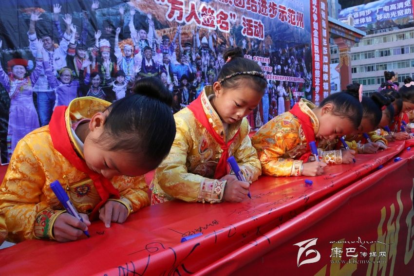 我們的家鄉(xiāng)更好更快地發(fā)展。”11月20日,在我州康定情歌廣場舉行創(chuàng)建全國民族團(tuán)結(jié)進(jìn)步示范州“萬人簽名”活動現(xiàn)場,來自省藏校的學(xué)生代表李康珠這樣說道。