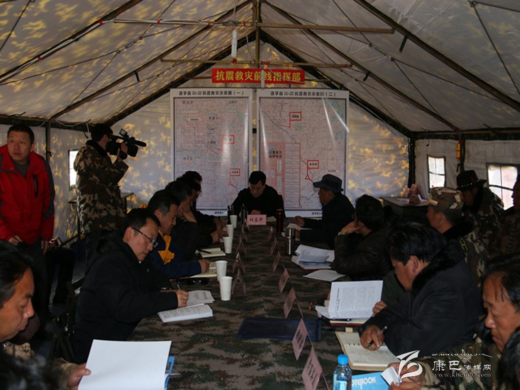 在前線指揮部,胡昌升主持召開前指工作專題會(huì)議,傳達(dá)了省委書記王東明和省長(zhǎng)魏宏到我州地震災(zāi)區(qū)調(diào)研指示精神,聽取前線指揮部辦公室和營(yíng)地各單位、康定縣、道孚縣關(guān)于抗震救災(zāi)工作的匯報(bào)。