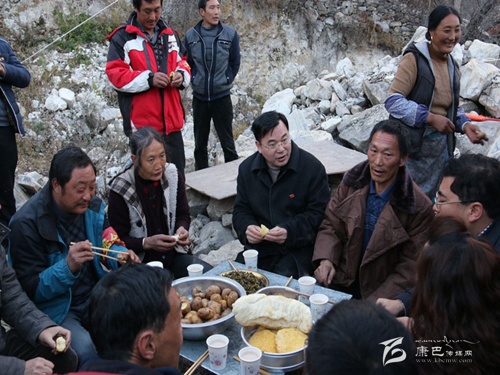 胡昌升欣然應(yīng)允。“這酸菜很好吃”,胡昌升一邊夾菜一邊說(shuō)道。“這是用元根葉做的,沒(méi)有一點(diǎn)污染,”何銀輝高興地說(shuō)。“這玉米饃饃也很好吃,很香”,胡昌升接著說(shuō)。“這里邊加了一些酥油”,何銀輝回答……