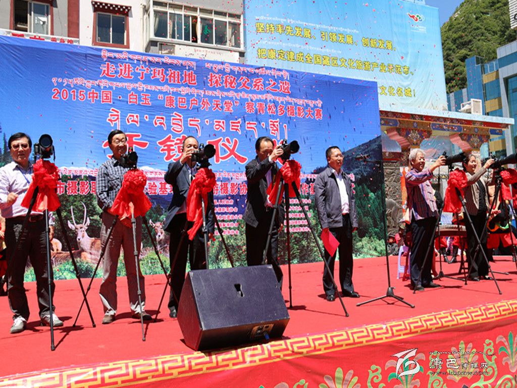 陳忠義宣布2015中國(guó)白玉“康巴戶外天堂”察青松多攝影大賽開(kāi)鏡。