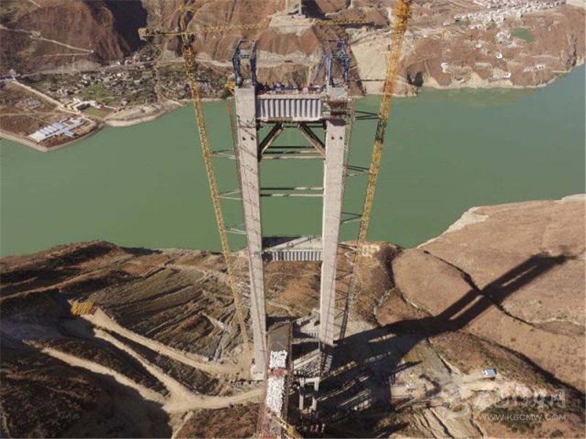 沿國(guó)道318線繼續(xù)往康定方向走,奔涌的大渡河鑲嵌在連綿起伏的山巒之間。車(chē)行一段距離后,矗立在河兩岸的兩座高聳的橋塔映入眼簾。這就是建設(shè)中的“川藏第一橋”——瀘定大渡河興康特大橋。