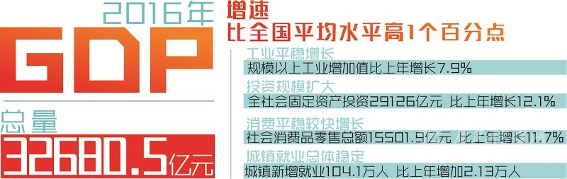 本網(wǎng)訊(記者 陳巖 梁現(xiàn)瑞 李龍俊)1月22日,省政府新聞辦召開(kāi)新聞發(fā)布會(huì),發(fā)布2016年經(jīng)濟(jì)數(shù)據(jù)。經(jīng)國(guó)家統(tǒng)計(jì)局審定,2016年全省實(shí)現(xiàn)地區(qū)生產(chǎn)總值(GDP)32680.5億元,按可比價(jià)格計(jì)算比上年增長(zhǎng)7.7%,增速比全國(guó)平均水平高1個(gè)百分點(diǎn)。全省經(jīng)濟(jì)運(yùn)行呈現(xiàn)總體穩(wěn)定、穩(wěn)中有進(jìn)、穩(wěn)中有好的發(fā)展態(tài)勢(shì),實(shí)現(xiàn)“十三五”良好開(kāi)局。