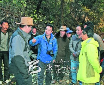10日早上8點30分,益西達瓦又率隊騎馬從卡斯村進入卡斯谷。一進谷口,大家就被谷口小巧別致的巖溶鈣化彩池、千年古樹沖天柏所震撼。據(jù)說谷口沿線還有古冰川的遺跡,是雪峰、冰川、海子、瀑布、溫泉的共融體,國家二類保護植物干香柏,藥用植物蟲草、貝母、黃芪、大黃等也非常豐富。面對谷內(nèi)五彩繽紛的山色、野性激蕩的溪流、挺拔粗壯的古樹、枝椏橫溢的叢林、結(jié)實樸拙的木橋、壁立千仞的懸崖,考察隊員不禁驚呼:“這不就是阿凡達的故鄉(xiāng)嗎?”益西達瓦時而騎馬,時而步行,一邊察看景致,一邊興高采烈的與同行考察隊員和縣鄉(xiāng)村干部交談。景區(qū)怎樣規(guī)劃?怎樣建設(shè)?怎樣宣傳?景區(qū)取什么名字?為景區(qū)賦予什么樣的文化靈魂?哪里修棧道?哪里架索道?哪里修觀光電梯?都一一指導,清晰地勾畫了卡斯谷開發(fā)藍圖。