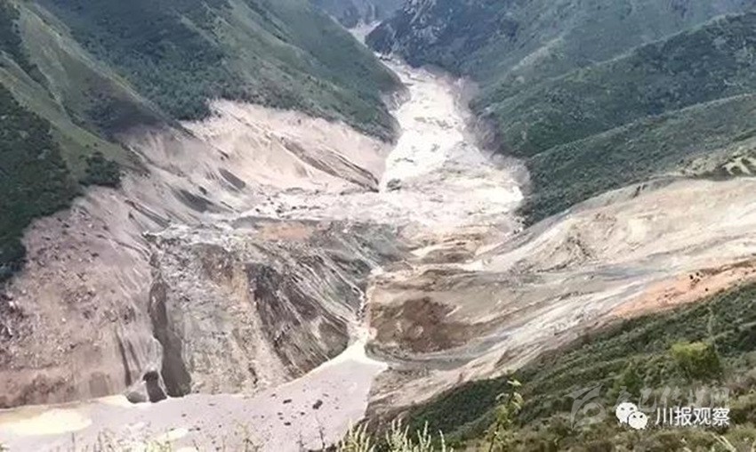 另據(jù)四川省防指和四川省水利廳工作組反饋:堰塞湖所在江段長約10.6公里,河谷為“V”形峽谷,兩側(cè)岸坡坡度20~60°,河谷結(jié)構(gòu)為斜向谷。河道上游彎曲、下游稍順直,水流急,局部稍緩。初步統(tǒng)計(jì),該段江段共有滑坡10處,崩塌3處,泥石流溝8條。其中有2處大型滑坡,即則學(xué)滑坡和仁達(dá)滑坡。