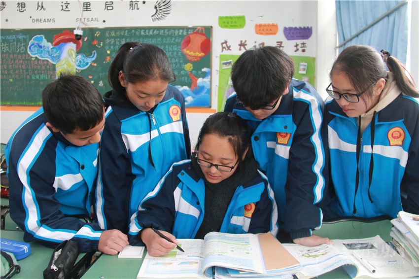 12月29日中午,記者在康定中學(xué)看到,一位皮膚黝黑、個(gè)子瘦小的女生端坐在教室里,手捧一本地理課外資料,正一臉滿足地向同學(xué)們講解著書(shū)中的“奧秘”。眼前這個(gè)“小老師”名叫擁忠夏姆,是康定中學(xué)高一年級(jí)8班的學(xué)生。