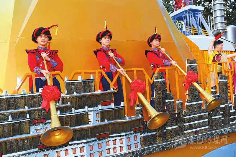 當(dāng)天中午12時(shí)25分,四川彩車緩緩駛?cè)胩彀查T核心檢閱區(qū)。金山銀山、新能源頁巖氣開發(fā)、核電技術(shù)華龍一號(hào)、金沙太陽神鳥圖案、“四水澤川”的江流……映入眼簾的四川彩車造型大方雅致、色彩明快熱烈,音樂、茶藝、舞蹈和雕塑結(jié)合,傳遞出一股震撼人心的力量。行進(jìn)至檢閱區(qū),左右兩側(cè)的展演人員微笑揮手,手執(zhí)彝族長(zhǎng)號(hào)的小伙由下向上,將號(hào)頭仰天直對(duì)車頭,傳達(dá)出四川兒女對(duì)祖國的祝福。