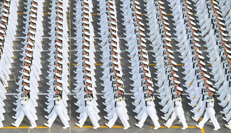 行進(jìn)中的海軍方隊。新華社記者岳月偉攝