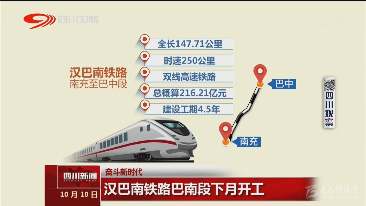 近日,省發(fā)改委對新建漢巴南鐵路南充至巴中段初步設計進行了批復。項目正線全長147.71公里,時速250公里,為雙線高速鐵路,總概算為216.21億元,建設工期4年半,由省鐵投集團公司和南充市、巴中市人民政府共同籌資建設。項目預計11月底全線開工建設,到2024年建成通車后,巴中至南充最短運行時間約為35分鐘,待成南達萬鐵路建成投運后,巴中至成都運行時間可縮短至75分鐘左右。